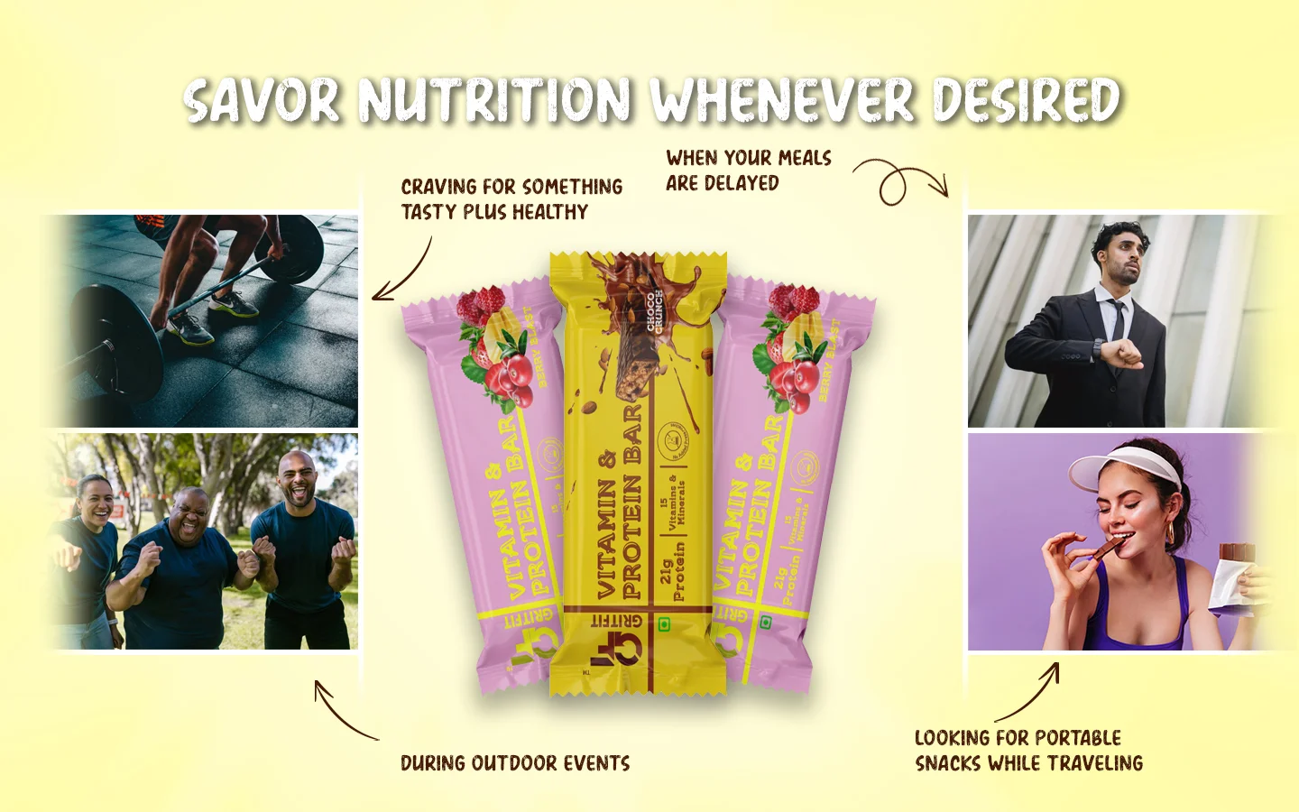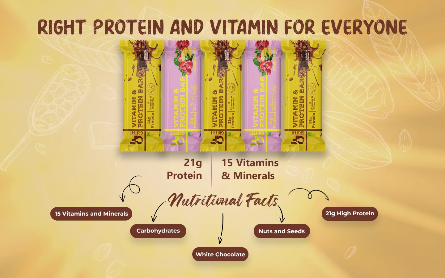 - Begin Your Wellness Journey: Make GRITFIT your partner in health and wellness. With our Vitamin & Protein Bar Pack, you’re not just choosing a snack; you’re embarking on a journey towards a healthier, more vibrant you.