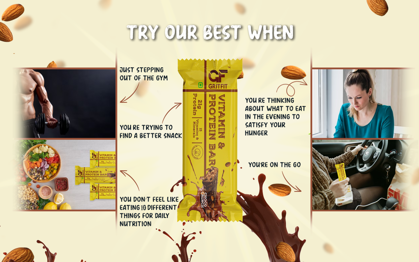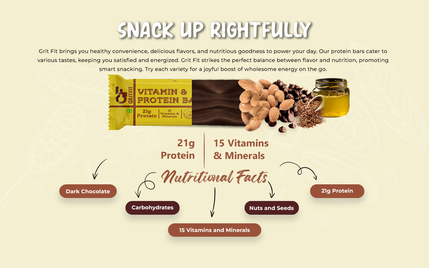 - Dive into the luxurious taste of Choco Crunch with our Irresistible Choco Crunch Flavor. The Grit Fit Energy Bar offers a delectable flavor that promises to delight your taste buds with every bite.